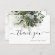 carte de remerciements plat avec verdure aquarelle, bouquets suspendus de gomme bleue Eucalyptus. Cette carte est agrémentée d'un script manuscrit moderne, merci.Copyright © 2016-2020 Bombino Designs™.
