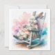 Une scène sereine dépeint un grand lapin en train d'adorer un plus petit lapin alors qu'il se détache dans une chaise à bascule. Tout le texte peut être modifié.