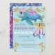 Invitation Mermaid 4e anniversaire Pink Blue Gold Parties sci