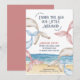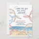 Invitation à la fête d'anniversaire Mermaid sur la plage intitulée "Venez nous rejoindre sous la mer, notre petite sirène a trois ans" - ou vous pouvez modifier pour n'importe quel âge que vous souhaitez. Aquarelle de saumon kéta muet neutre avec queues de sirène sur une scène de plage. Parfait pour une fête d'été, une fête de piscine, une fête de plage ou bien sûr une fête de sirène !