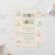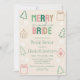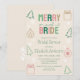 Merry and bride! Winter Christmas bridal shower with green trees, decorative ornaments and gift boxes against a neutral beige background accented with white snowflakes
