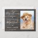 Laissez votre meilleur chien annoncer votre mariage avec ces cartes "save the date" pour chien de compagnie rustiques mais élégantes "En tant que chien d'honneur, j'annonce que mes humains se marient". Cartes "save the date" pour chien et invitations de site web de mariage. Personnalisez avec votre photo préférée et personnalisez avec les noms, le site web de mariage, le code QR pour RSVP en ligne. Ces invitations de site web de mariage avec code QR sont parfaites lorsque vous souhaitez conserver toutes les informations de mariage sur votre site web et ne pas vous soucier des RSVP perdus. Ces invitations de mariage en ligne amusantes pour animaux de compagnie sont le moyen idéal pour simplifier vos réponses aux invitations de mariage, modifier les détails, les dates ou le lieu est aussi facile que quelques frappes de touches. Cette carte de mariage pour chien fait office à la fois d'annonce "save the date" et d'invitation de mariage tout-en-un. COPYRIGHT © 2020 Judy Burrows, Black Dog Art - Tous