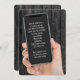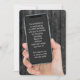 Téléphone portable à la main sur bois rustique gris foncé pour une fête de 40ème anniversaire. Tout le texte est modifiable.