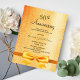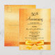 Une carte d'invitation dorée pour un 50e anniversaire de mariage d'or. Glamour avec un fond métallisé doré faux rustique élégant et un nœud doré en décoration. Modèle pour les noms et les détails de la fête. Le texte : 50e anniversaire et les noms sont écrits avec une police de caractères manuscrits moderne.