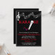 Invitation Microphone Gamme Musicale Fête Karaoke Rouge Blanc