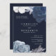 Midnight Blue Floral Silver Leaf Romantique Faire-part de mariage