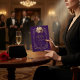 Invitation Midnight Masquerade Gold Feather Mask Purple