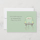 C'est une carte-réponse de mariage mignonne, légère et moderne. Elle comporte une voiture compacte verte et grise avec des boîtes de conserve attachées à l'arrière et un panneau "Just Married" sur la lunette arrière. Votre texte personnalisé est imprimé en gris clair sur un côté. L'image et le texte sont placés sur un fond vert menthe. Le dos de la carte est également vert menthe, avec votre texte personnalisé. Cette carte correspond aux "Faire-part de mariage vert menthe Modern Forever Love" et à d'autres produits de la collection "Special Day Wedding". *Les illustrations utilisées dans ce design sont la propriété d'Encore Software, Inc., qui en autorise l'utilisation à ses concédants.