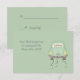 C'est une carte-réponse de mariage mignonne, légère et moderne. Elle présente une petite voiture compacte verte et grise avec des boîtes de conserve attachées à l'arrière et un panneau "Just Married" dans la lunette arrière. Votre texte personnalisé est imprimé en gris clair sur un côté. L'image et le texte sont placés sur un fond vert menthe. Le dos de la carte est également vert menthe, avec votre texte personnalisé. Cette carte correspond aux "Faire-part de mariage vert menthe Modern Forever Love" et à d'autres produits de la collection "Special Day Wedding". *Les illustrations utilisées dans ce design sont la propriété d'Encore Software, Inc., qui en autorise l'utilisation à ses licenciés.