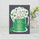 Invitation de St. Patrick's Day amusante avec une tasse débordante de bière verte ornée de shamrocks posée sur un arrière - plan de tableau noir. Facile à customiser avec vos informations de fête St. Patricks.