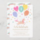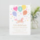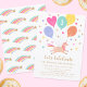 Célébrez un anniversaire magique avec ces invitations de fête mignonnes et colorées! Illustration simple d'une petite licorne entourée de ballons, de coeurs et d'étoiles. Il présente l'âge de l'anniversaire et le script branché avec les mots "Fêtons". Tout le texte peut être customisé, de sorte que vous pouvez inclure les informations que vous voulez. Sur le dos, un motif aux étoiles de tournage arc-en-ciel poursuit le thème magique. Cette carte personnalisée est parfaite pour les anniversaires d'étape des jeunes enfants. Un modèle élégant à la palette de couleurs pastel pêche, rose, jaune, bleu-vert, lavande-bleu et or.