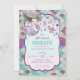 Invitation à la fête d'anniversaire de sirène lunatique, avec une belle sirène et adorable sous les créatures de la mer sur fond d'océan profond arc-en-ciel. Personnalisez-le avec les détails de votre partie facilement et rapidement, appuyez simplement sur le bouton customiser pour réorganiser et formater le style et le placement du texte. Objets correspondants disponibles en magasin ! c) Le Happy Cat Studio.