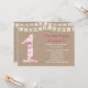 Première invitation d'anniversaire de style chic minable avec la bannière mignonne d'étamine sur un arrière - plan de toile de jute. Cette invitation a un grand numéro 1 avec un beau motif chic minable.