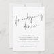 Mini-Script Friendsgiving Dîner Black and White Thanksgiving Invitation. Style minimaliste simple avec typographie de style manuscrite pour le dîner Friendsgiving. Personnalisez facilement le reste du texte avec les détails de votre événement. Vous pouvez également modifier le texte et les couleurs arrière - plans si vous le souhaitez via l'option Modifier plus.
