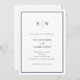 Ces invitations de mariage élégantes et modernes présentent un design de texte minimaliste blanc et bleu marine, avec un cadre classique à la frontière. Ajoutez vos initiales ou votre monogramme pour les rendre complètement vôtres.