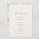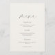 This elegant wedding menu features a clean, minimalist front design paired with a soft floral botanical pattern on the back. The refined neutral palette and delicate typography create a timeless look that complements classic, romantic, and modern wedding styles.