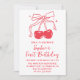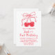 Invitation Minimal Red Bow Cherry Fruit 1st Birthday Party