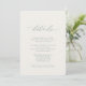 This elegant wedding details card features a refined minimalist design with soft sage green typography on a warm ivory background. Clean layout and graceful script headings create a timeless look that pairs beautifully with modern, classic, and garden-style weddings.