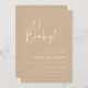 Cette élégante invitation au baby shower présente un design beige minimaliste et neutre avec une calligraphie moderne blanche. Il fera l'invitation parfaite pour le baby shower minimaliste de votre bébé. Utilisez les champs modèle pour ajouter vos informations et customiser cet invitation. Contactez le concepteur si vous avez besoin d'aide pour ajouter vos informations.