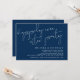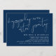 Ceci est le carton d'invitation de mariage fuite party, avec un design de script Bleu Nuit minimalisme / minimaliste.