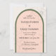 This unique wedding invitation features a clean, contemporary design centered around a bold dark green arch. The arch is overlaid on a delicate blush pink background with subtle line art floral sketches peeking through. This minimalist aesthetic is perfect for the modern couple.