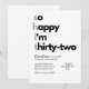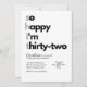 Invitation Minimaliste 32e anniversaire, So Happy I'm Thirty Two Nous savons à quel point il est difficile de planifier pour la journée spéciale de votre petit ! Cette 32ème invitation à thème minimaliste anniversaire est parfaite pour votre occasion !
