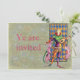 Invitations illustrant une illustration vintage d'une cheminée médiévale tenant un luth et portant un habit coloré.