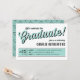 Invitation à la remise des diplômes d'inspiration diner unique et féminine avec typographie rétro noir et bleu menthe avec motif triangles. Cette invitation est disponible dans une variété de couleurs.