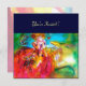 Personnage coloré, fantaisiste et vibrant de masquerade vénitienne. Une belle femme blonde sophistiquée est assise avec une rose rouge et un masque à plumes à la main, avec des tissus dorés et fuchsia scintillants d'un costume de bal masqué baroque avec des plumes et un chien. Peinture à l'aquarelle avec des couleurs vives en jaune, bleu, rose, vert, paillettes dorées et feuille d'argent, inspirée des personnages de la Comédie de l'Art (Commedia dell'Arte), du Carnaval de Venise et des masques à plumes vénitiens. Ce design cool et artistique est parfait pour les mariages, les cérémonies de nuptialité, les douches de mariée, les anniversaires de 16 ans, les fêtes de quinceañera, les soirées costumées d'Halloween, les bals costumés