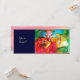 Personnage coloré, fantaisiste et vibrant de masquerade vénitienne. Une belle femme blonde sophistiquée est assise avec une rose rouge et un masque à plumes à la main, avec des tissus dorés et fuchsia scintillants d'un costume de bal masqué baroque avec des plumes et un chien. Peinture à l'aquarelle avec des couleurs vives en jaune, bleu, rose, vert, paillettes dorées et feuille d'argent, inspirée des personnages de la Comédie de l'Art (Commedia dell'Arte), du Carnaval de Venise et des masques à plumes vénitiens. Ce design cool et artistique est parfait pour les mariages, les cérémonies nuptiales, les douches de mariée, les anniversaires de 16 ans, les fêtes de quinceañera, les soirées costumées d'Halloween, les bals costumés, les