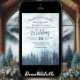 Cette belle faire-part de mariage présente un style rustique mais élégant avec la calligraphie en dentelle sur une aquarelle arrière - plan d'épinette bleue de montagne ou de pins, enveloppés de brume ou de brouillard. Les couleurs sont variées et bleues, ce qui rend cette invitation parfaite pour une cérémonie en plein air, en pleine nature ou en hiver. L'arrière a de l'espace pour un code QR et une adresse web où vos invités peuvent obtenir plus d'informations et RSVP.