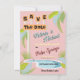 Enregistrez la Date à Palm Springs, Miami ou n'importe quel endroit ensoleillé du désert. Il dispose d'une enseigne moderne du milieu du siècle, d'une piscine, de feuilles de palmiers et de polices de caractères amusantes à l'ambiance rétro moderne. Couleurs funky de rose, vert, orange et bleu doux. Tous les termes peuvent être modifiés sauf "enregistrer la date". Pour apporter d'autres modifications, accédez à Personnaliser ce modèle. En bas, vous verrez "Vous voulez customiser encore plus ce design ? Cliquez sur EDIT à l'aide de l'outil Design. Il faudra un peu d'apprentissage, mais vous pouvez changer certaines polices et certaines couleurs, déplacer les choses ou supprimer ce dont vous avez besoin. Tu vas en prendre le coup.