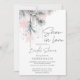 Neige en amour douche nuptiale editable invitation modèle instantanée téléchargement numérique, aquarelle rose pastel et gris hiver branches de pin enneigé avec guirlandes cristallines douche nuptiale invitation moderne, décontractée police