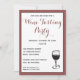Cette élégante invitation à une dégustation de vin présente une illustration simple en noir et blanc d'un verre de vin. La bordure de la carte ainsi qu'une partie du texte sont de couleur vin, et le reste du texte est noir. Il suffit d'utiliser le modèle pour personnaliser facilement ces invitations.