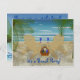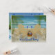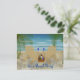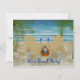 Dessin d'une scène de plage avec deux transats face à l'océan à l'ombre des palmiers. Sur les chaises s'assoient deux verres de vin. A côté des chaises, un panier contient un verre de vin supplémentaire, une bouteille de vin et un livre. Tout ce dont vous avez besoin pour passer une journée reposante à la plage. Invitation a deux côtés personnalisables. Ajoutez vos propres informations de salutation et d'événement, choisissez votre style de police, votre taille et votre couleur.