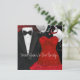 Elégant tuxedo et robe rouge noir cravate modèle invitation de fête. Cette belle tuxedo noir formel, robe rouge, champagne, confettis et ballons cravate noire invitation est facilement customisé pour votre événement en choisissant simplement le bouton "Customisez!" pour commencer à ajouter vos détails de l'événement, le style de police, la taille et la couleur de police, et le libellé. Veuillez noter que tous les modèles de cartes et d'invitations que vous trouverez sur Zazzle sont des graphiques imprimés sans bijoux, arcs, surélevés, gaufrés, ou des pièces ou pièces ajoutées.