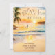Modèle de faire-part "Tropical Save The Date" imprimable à l'aquarelle pour annonce de mariage de destination sur une plage océane