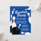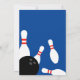 Modèle d'invitation d'anniversaire moderne pour quilleur. Invitations sympas avec des boules de quilles noires et des quilles blanches. Personnalisez avec votre propre nom et texte. Activité amusante pour les enfants et les adultes. Fond bleu ou couleur personnalisée. Allons frapper quelques quilles !