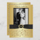 Cette élégante invitation photo pour un 50e anniversaire de mariage aux motifs floraux or et noirs comporte un ruban noir IMPRIMÉ et un médaillon noir et or à l'aspect gravé FAUX IMPRIMÉ. Elle comprend une zone de modèle pour que vous puissiez télécharger votre propre photo numérique. Tout le texte est personnalisable, ainsi que les choix de papier. AUSSI, si vous changez de police ou de taille de police, votre texte risque de ne plus convenir correctement. Zazzle ne modifiera rien pour les fautes de frappe, les désalignements ou autre, et je ne verrai pas votre invitation. Tout sera imprimé tel qu'il apparaît sur votre moniteur. Si vous avez besoin d'aide pour l'invitation, veuillez me contacter AVANT de la commander. Cette invitation est conçue pour s'adapter au format de carte 5x7. Si vous changez de taille, le design ne conviendra plus correctement, donc si vous souhaitez une taille différente, veuillez me contacter pour que je puisse