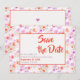 Annoncez votre jour spécial avec style grâce à ce design botanique tropical élégant dans les couleurs tendance orange mangue et lavande qui présente un joli motif de fleurs aquarelles douces et une typographie élégante. Il est facile à personnaliser et le format carte postale en fait un choix économique pour les mariages à budget limité. #mangue #orange #floral #savethedate