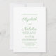 le design d'avant montre une faire-part de mariage écrite en calligraphie et typographie vert classique avec arrière - plan blanc. le design est parfait pour élégant, classique, unique, moderne thème mariage.