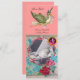 Design floral élégant, drôle de style vintage avec un bébé et cigogne volant parmi les belles roses, roses rouges, fleurs de printemps bleu et une dynamique, brillante, rose, fuchsia pierre de rubis 3D. par Bulgan Lumini.
