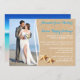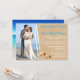 Voulez-vous organiser une réception de mariage abordable après la cérémonie pour célébrer votre union sur une plage tropicale ? Même si vous êtes partis en lune de miel dans les tropiques, vous pouvez toujours donner à vos proches un aperçu de la joie que vous avez partagée ce jour-là grâce à ce faire-part de réception "plage de sable et étoile de mer". Le texte est de couleur bleu Bahamas et blanc, mais il peut être modifié selon vos préférences. Des photos ou du texte supplémentaires peuvent être ajoutés au verso.