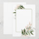 Voici un carton d'invitation de mariage vierge à personnaliser ; il comporte un spray de feuilles dans des tons de vert olive et de vert sauge avec des reflets marron