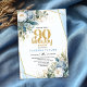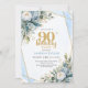 Invitation Modern Blue Floral Gold Frame 90th Birthday Invite
