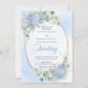 Invitation Modern Blue Floral Gold Oval Wedding Invite