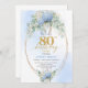 Invitation Modern Blue Hydrangea Gold Frame 80th Birthday