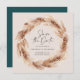 Faire-part de mariage d'herbe bohème naturel moderne. Élégant texte de script et sur le feuillage botanique tendance. Couleur turquoise moderne.