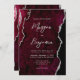 Invitation Modern Burgundy Agate Silver Script Wedding