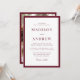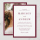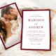 Create a warm, elegant first impression with this burgundy photo wedding invitation, designed with classic serif typography, graceful calligraphy accents, and a rich burgundy border. The back of the invitation showcases your vertical engagement photo within a matching frame, adding a personal touch while maintaining a refined, editorial feel. The deep, romantic tone pairs beautifully with traditional ceremonies, formal settings, and timeless wedding styles.